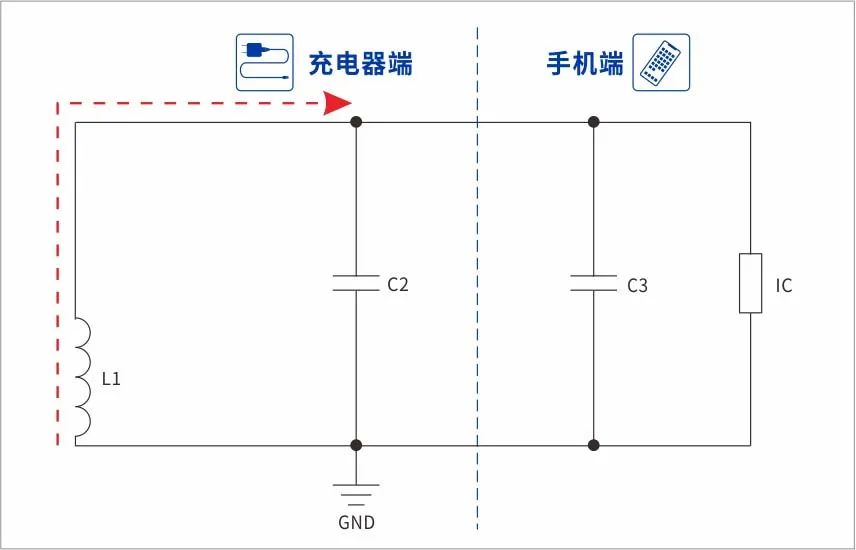 如上圖,總會存在一些斷開充電的瞬間,漏感L1給C2、C3充電,除此之外,充電端到手機端整個充電回路其實也有電感存在??傊覀兌伎梢园阉粗荓1 。