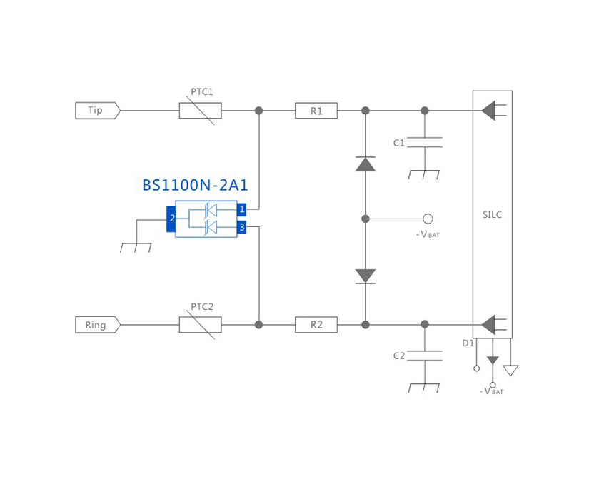RJ11 SLIC 10/700μs CM/DM 6KV