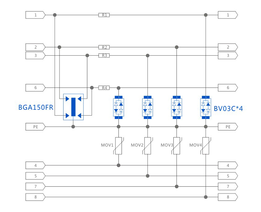 RJ45 POE 8/20μs CM/DM 3KA